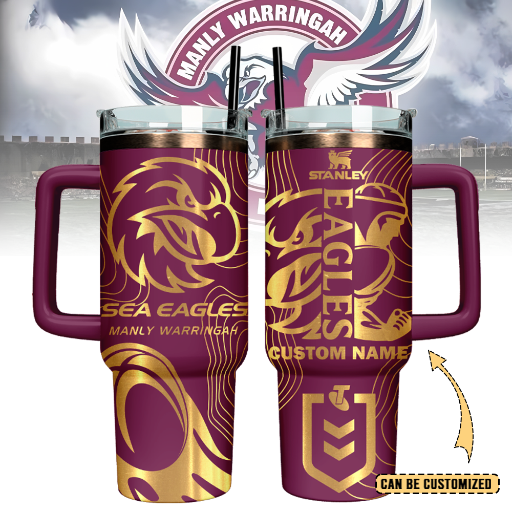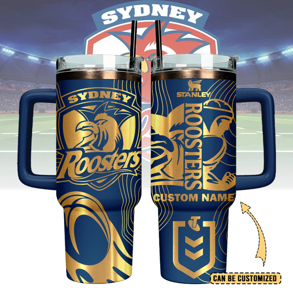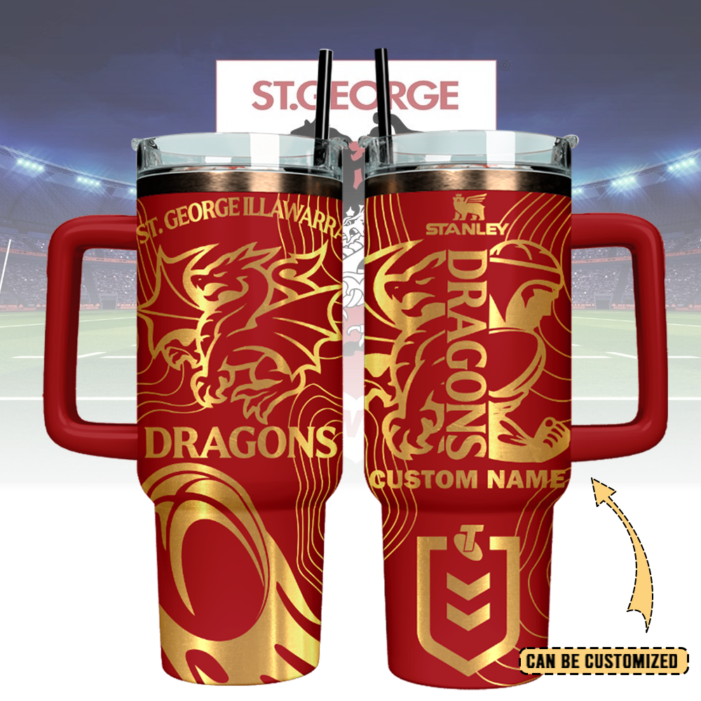 Aussiesmerch South Sydney Rabbitohs Custom Stanley Quencher 40oz Stainless Steel Tumbler With Handle