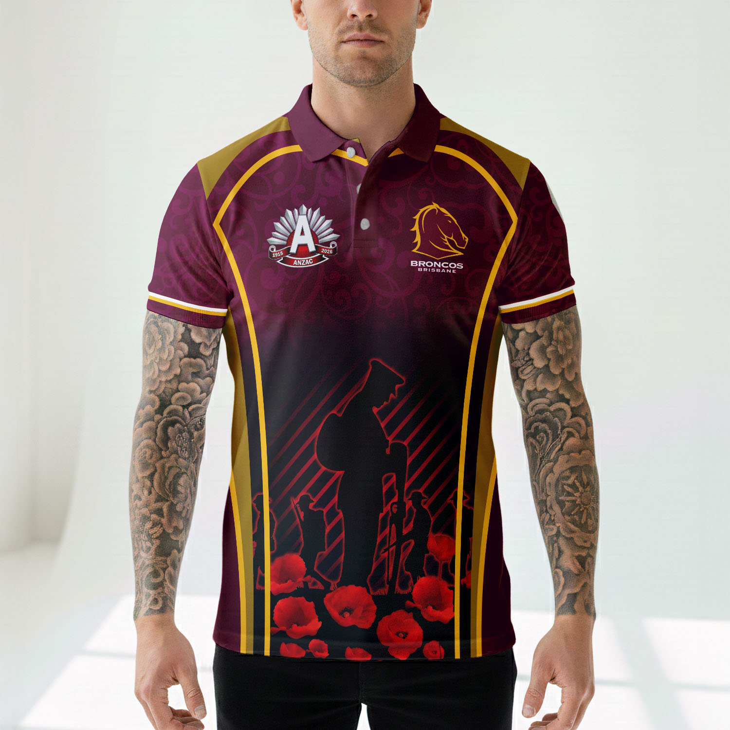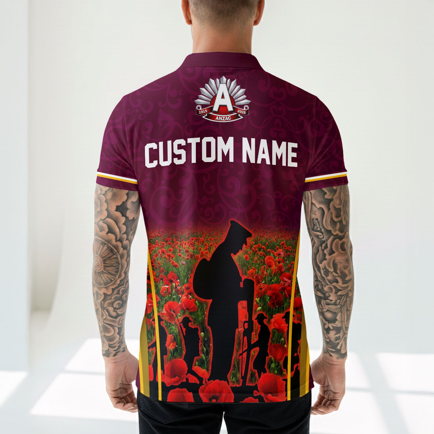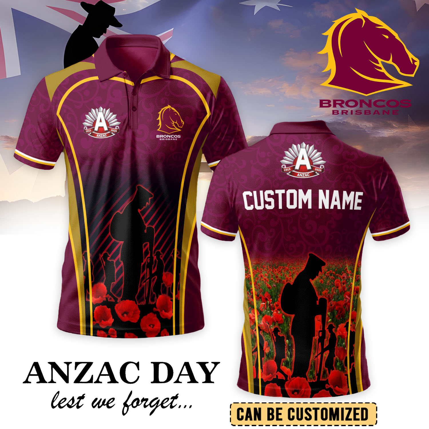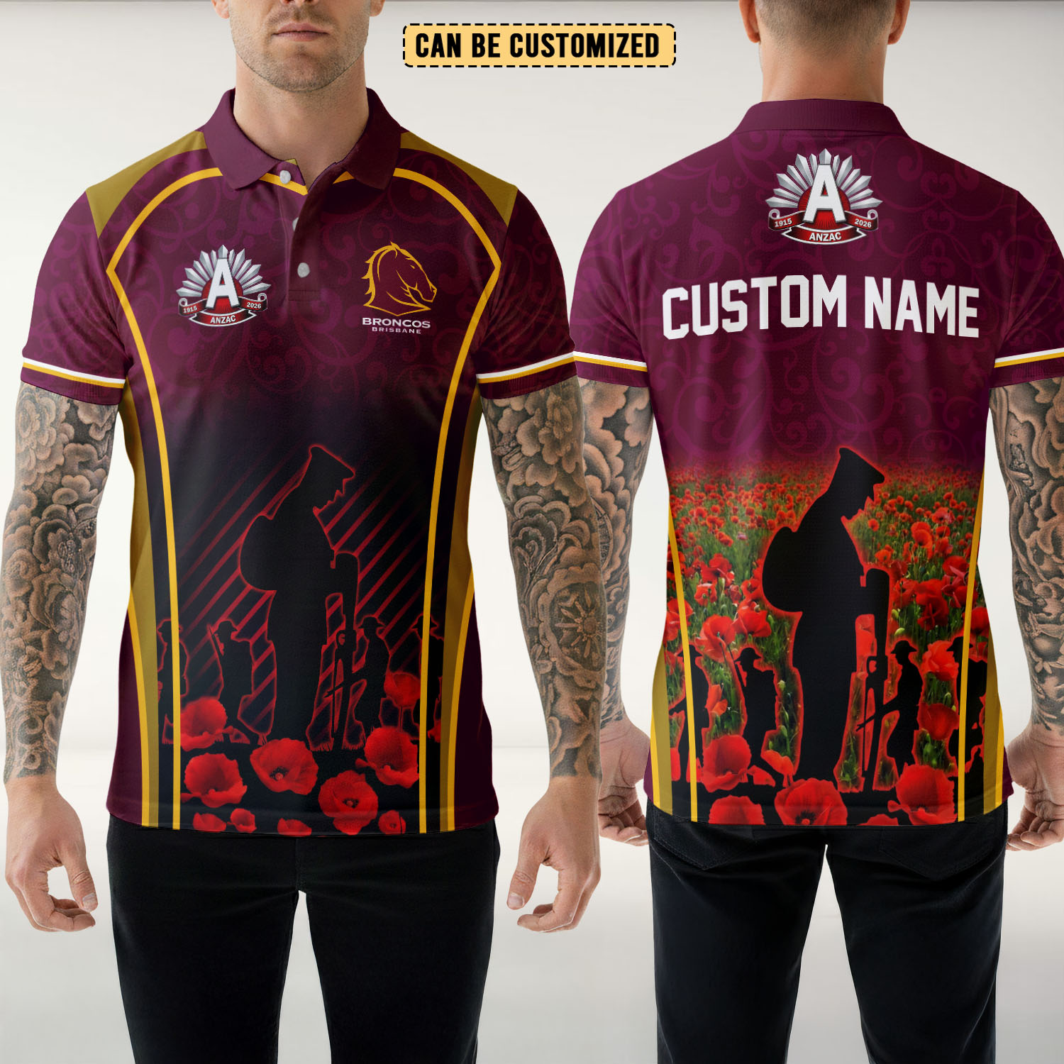 Aussiesmerch Brisbane Broncos x Anzac Day Personalized Polo Shirt Gift For Fans