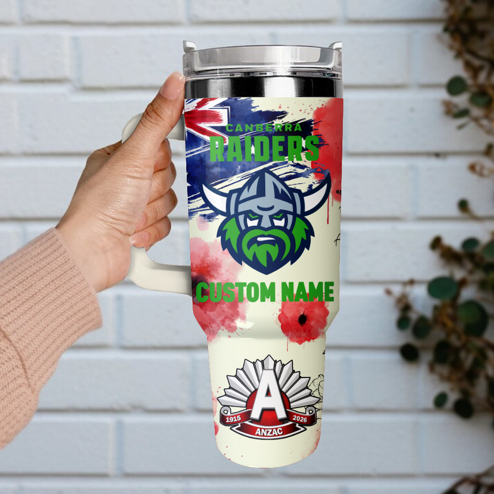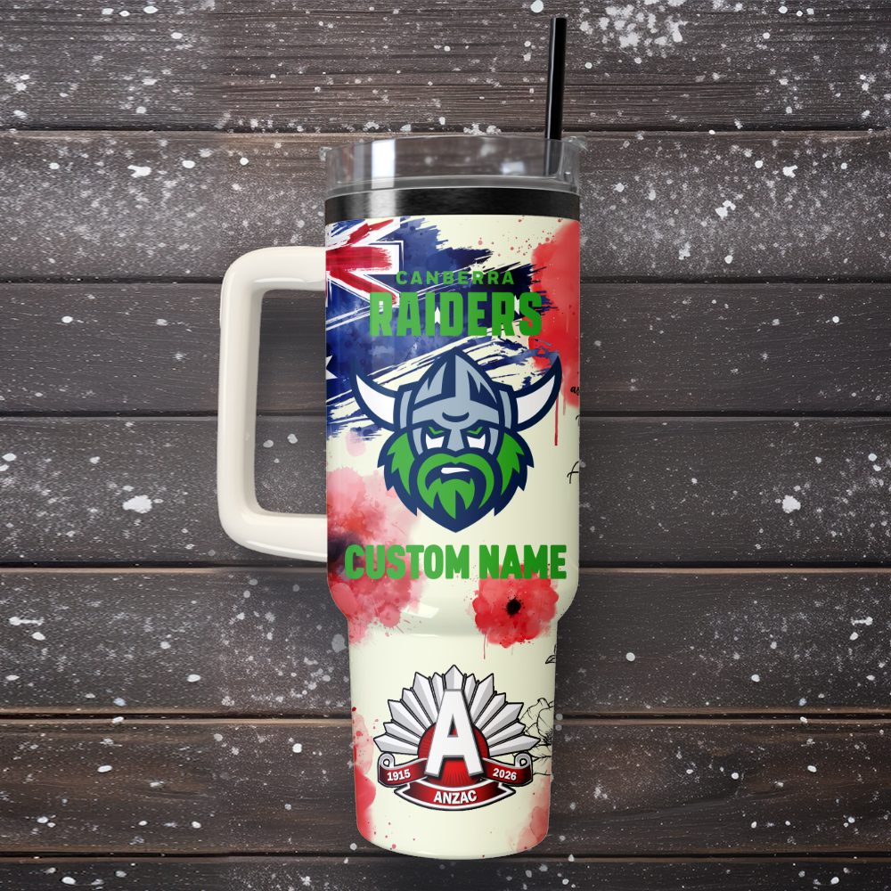 Aussiesmerch Canberra Raiders x Anzac Day Custom Stanley Quencher 40oz Stainless Steel Tumbler With Handle