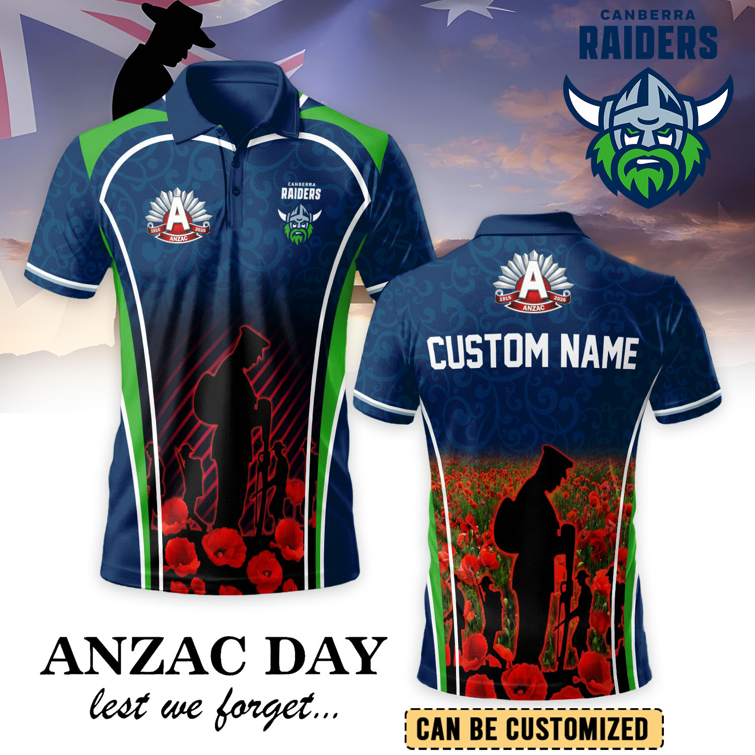 Aussiesmerch Canberra Raiders x Anzac Day Personalized Polo Shirt Gift For Fans
