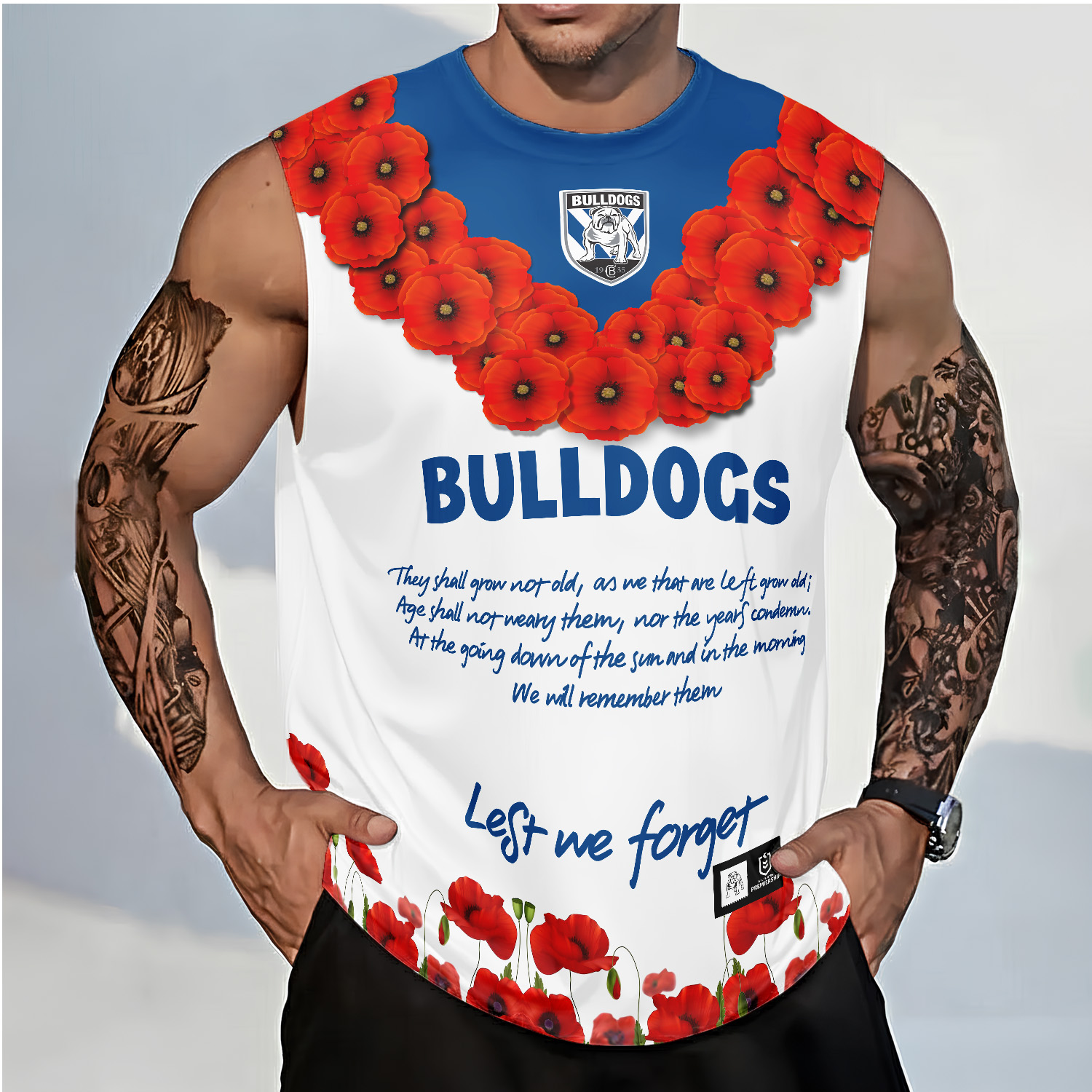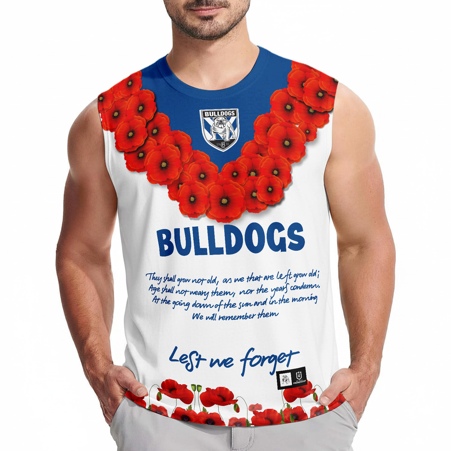 Aussiesmerch Canterbury-Bankstown Bulldogs x Anzac Day Personalized Tank Top Gift For Fans