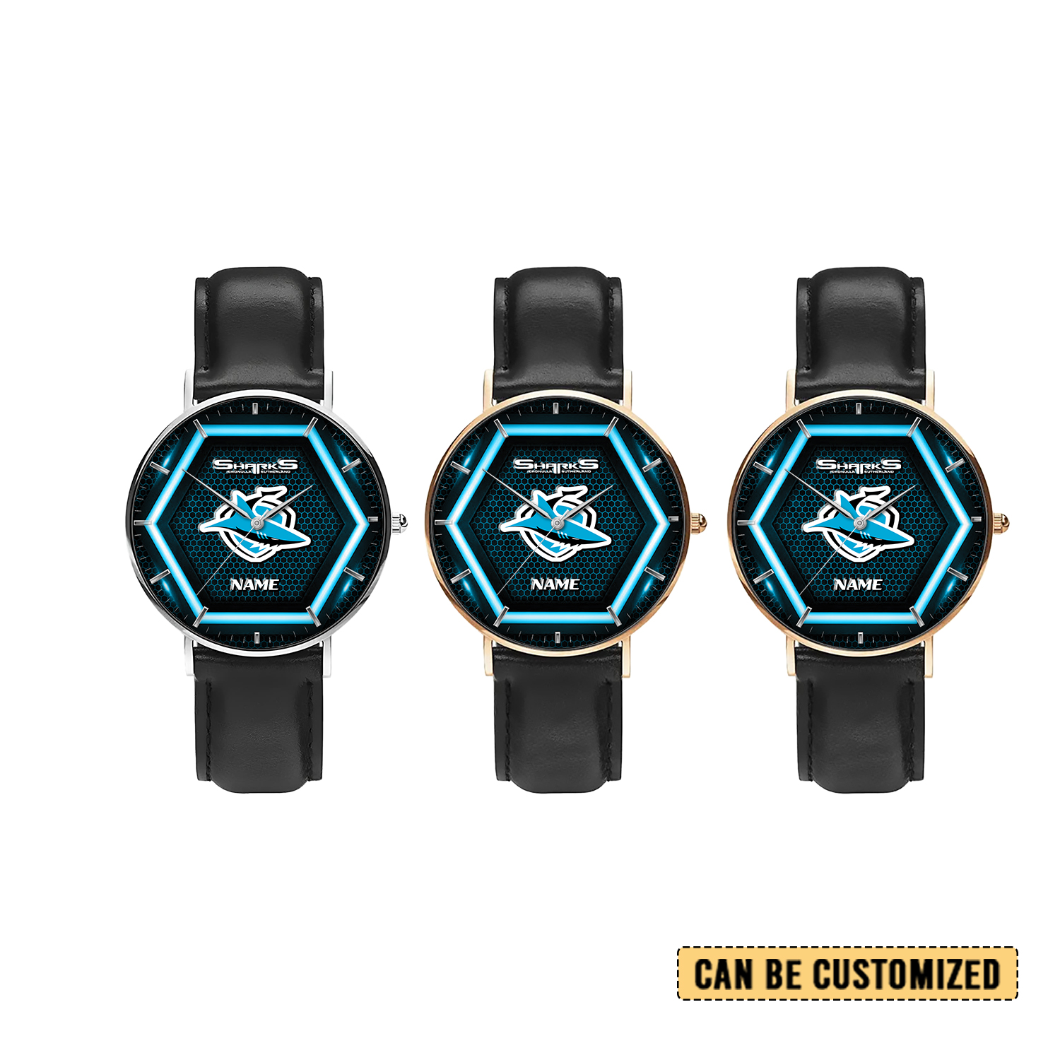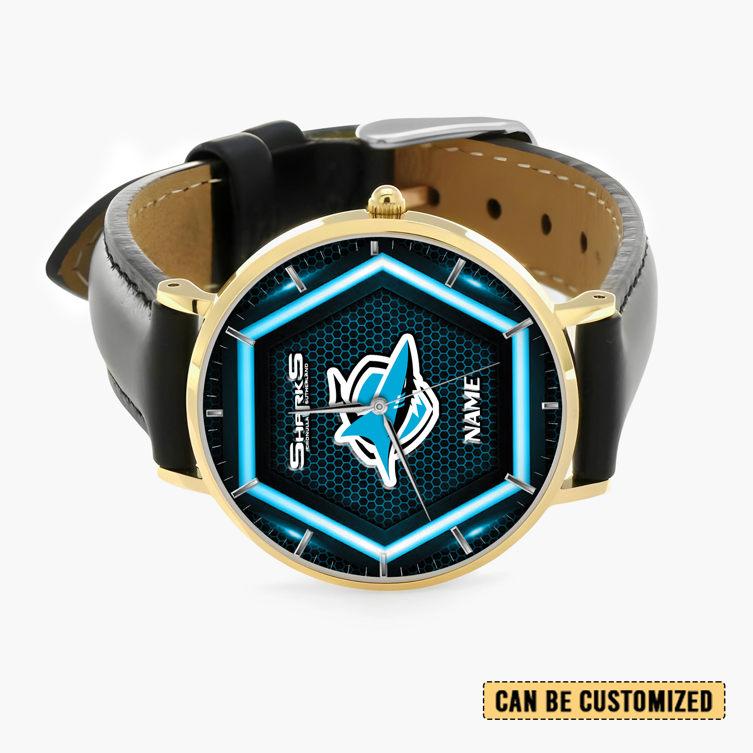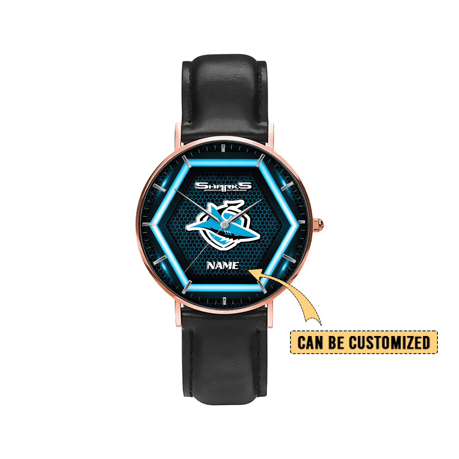 Aussiesmerch Cronulla-Sutherland Sharks Personalized Stitched Leather Watch Gift For Fans