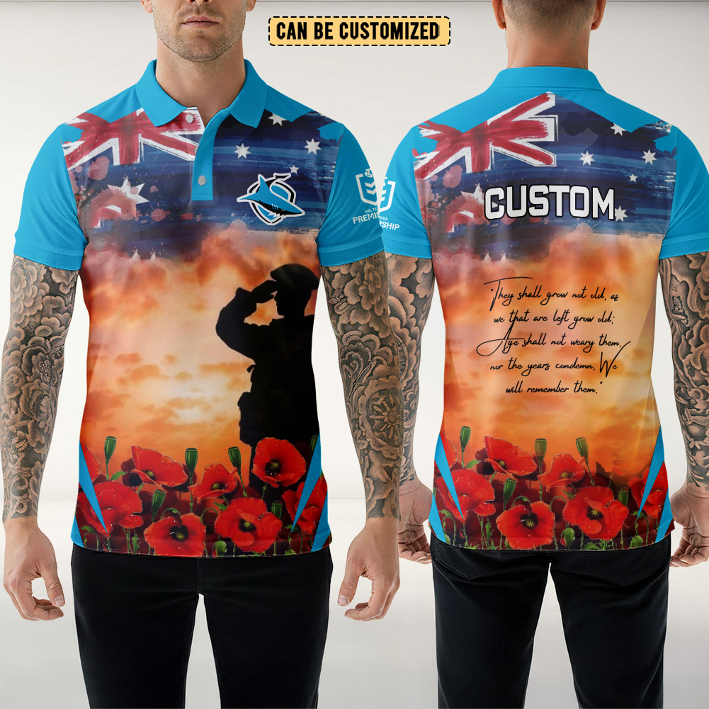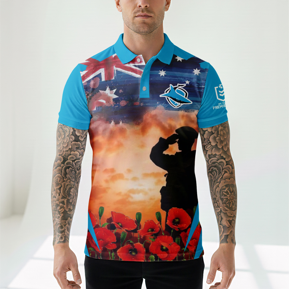 Aussiesmerch Cronulla-Sutherland Sharks x Anzac Day Personalized Polo Shirt Gift For Fans