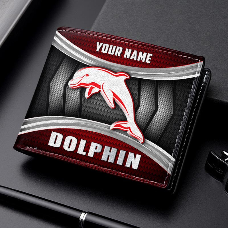 Aussiesmerch Dolphins Personalized Leather Wallet Gift For Fans