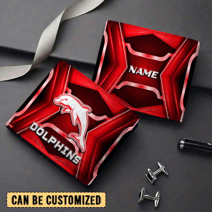 Aussiesmerch Dolphins Personalized Leather Wallet Gift For Fans