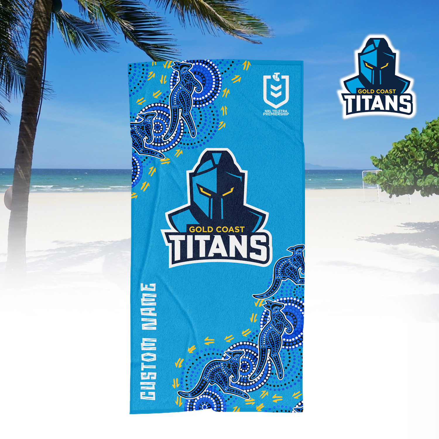 Aussiesmerch Gold Coast Titans Personalized Pool Travel Beach and Bath Towels for Kids and Adult