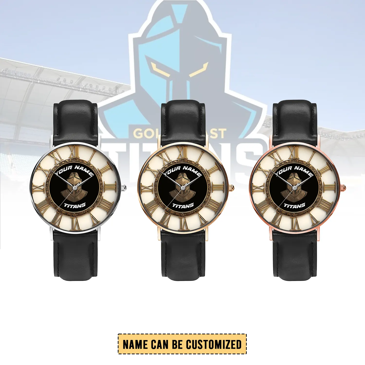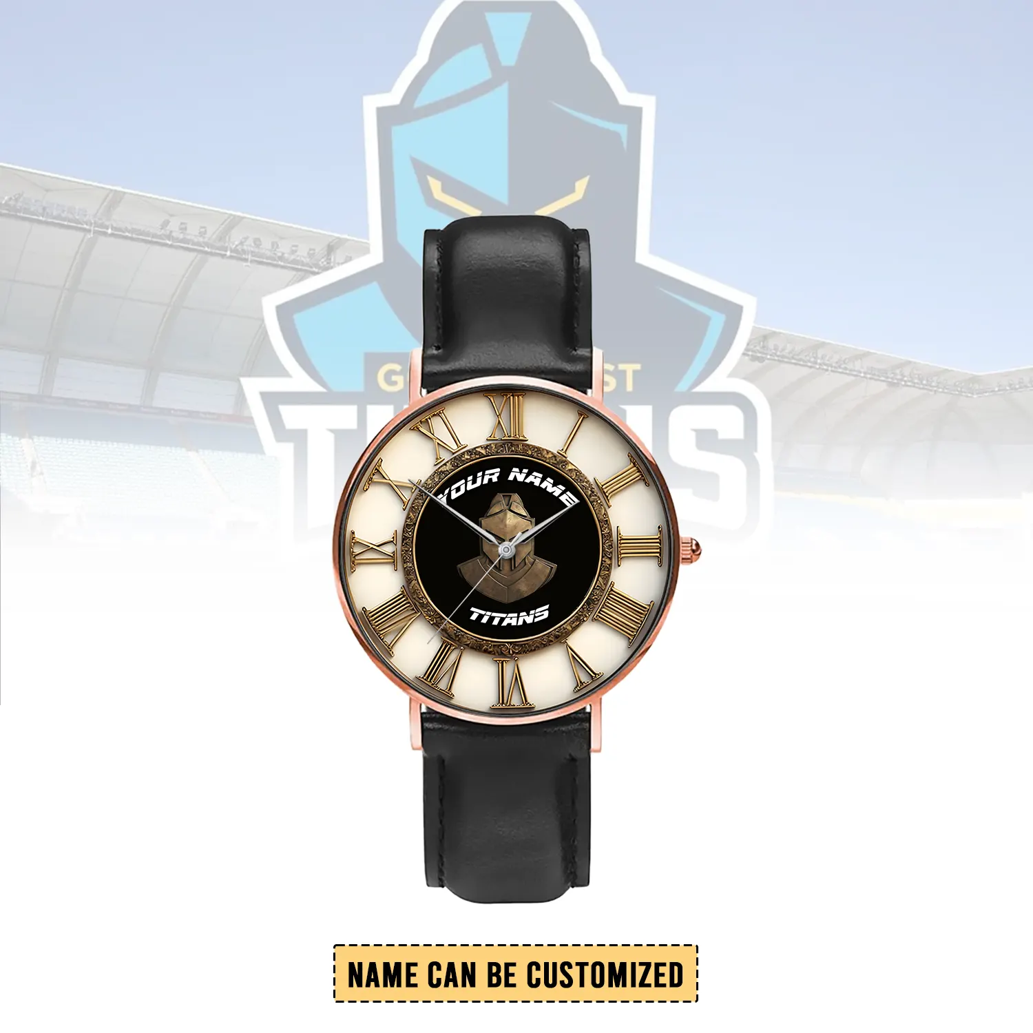 Aussiesmerch Gold Coast Titans Personalized Stitched Leather Watch Gift For Fans