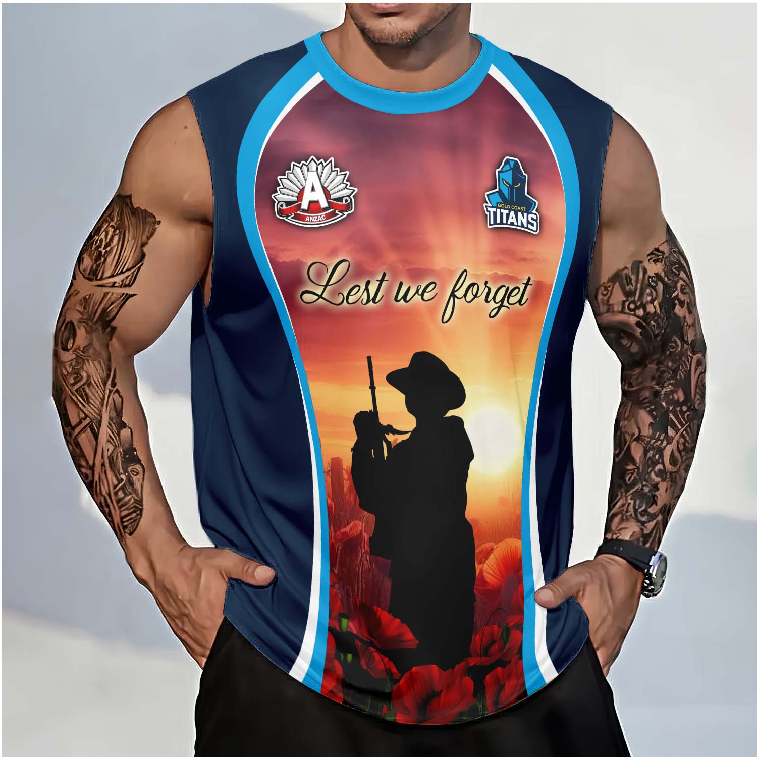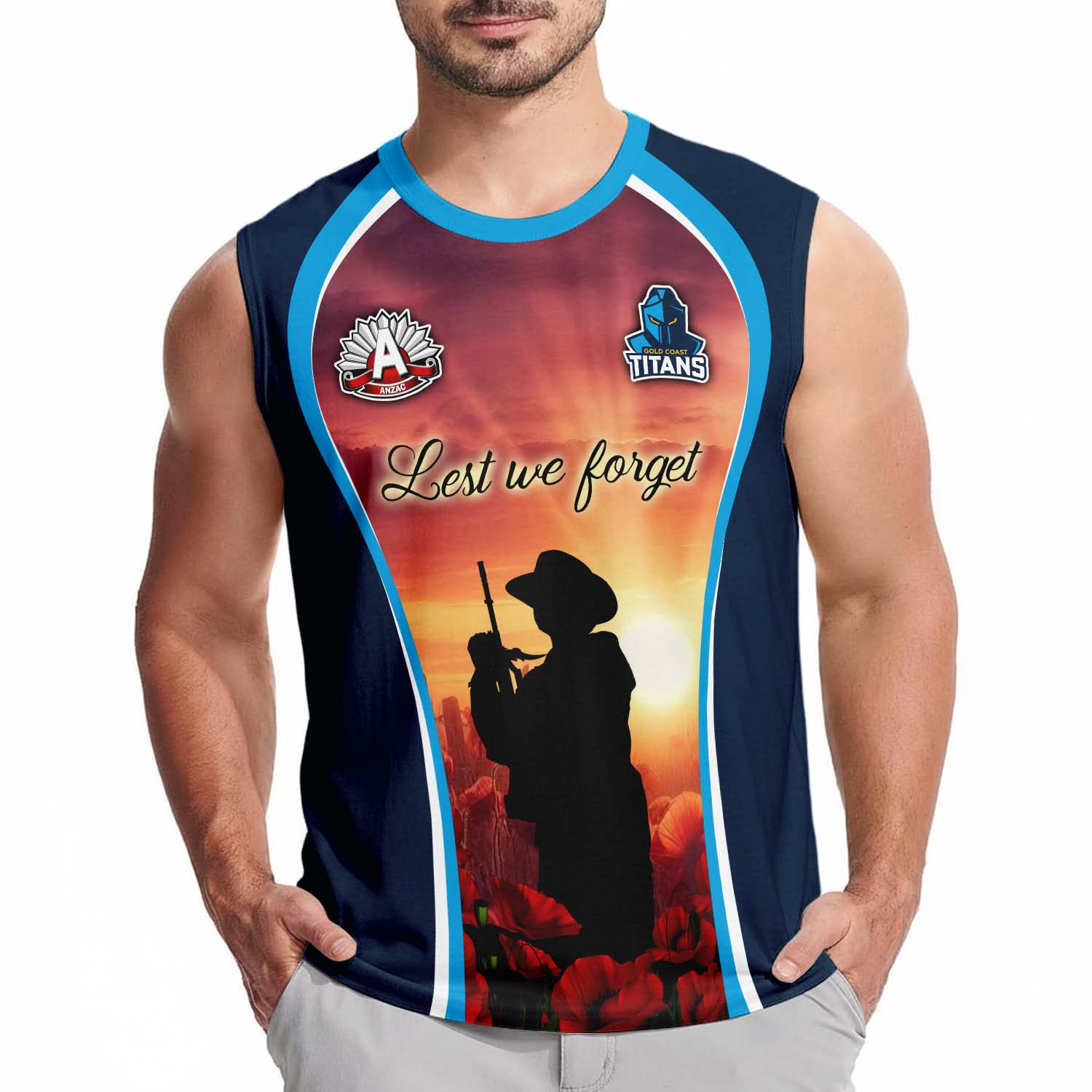 Aussiesmerch Gold Coast Titans x Anzac Day Personalized Tank Top Gift For Fans
