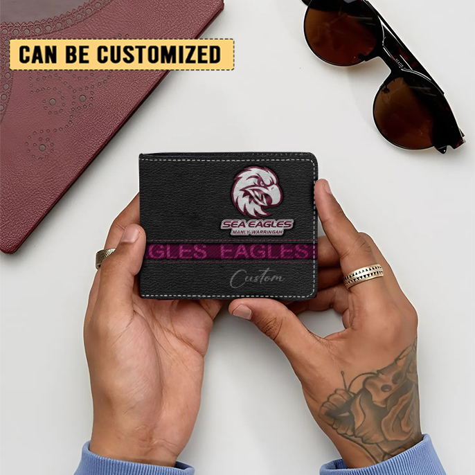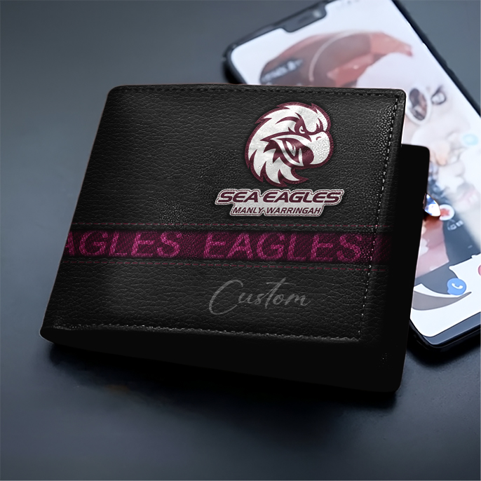 Aussiesmerch Manly Warringah Sea Eagles Personalized Leather Wallet Gift For Fans