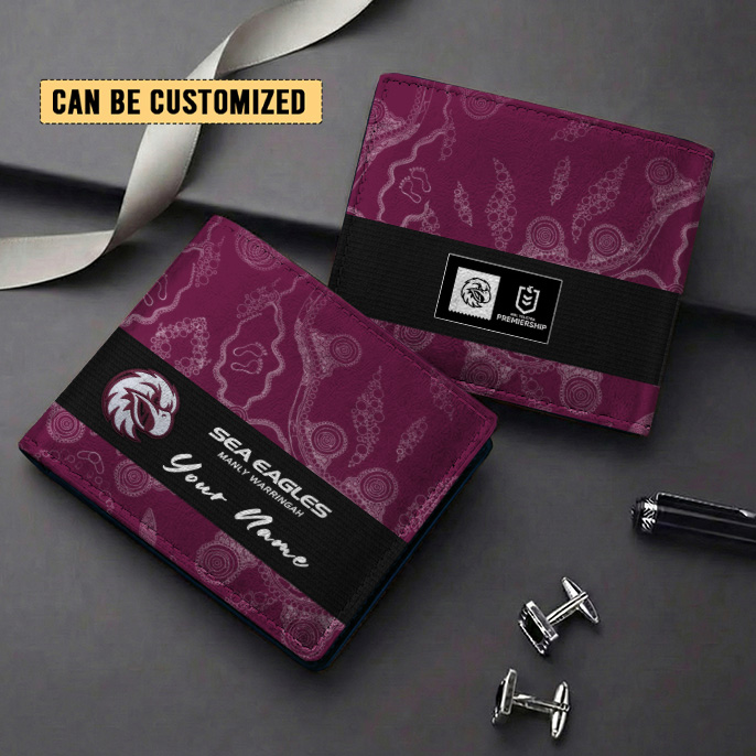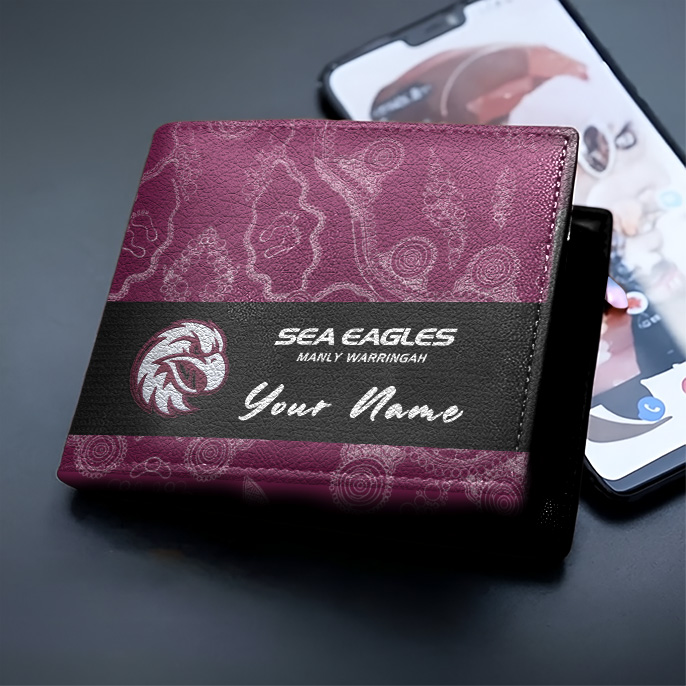 Aussiesmerch Manly Warringah Sea Eagles Personalized Leather Wallet Gift For Fans