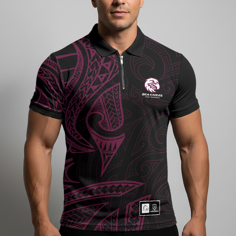 Aussiesmerch Manly Warringah Sea Eagles Personalized Zip Polo Shirt Gift For Fans