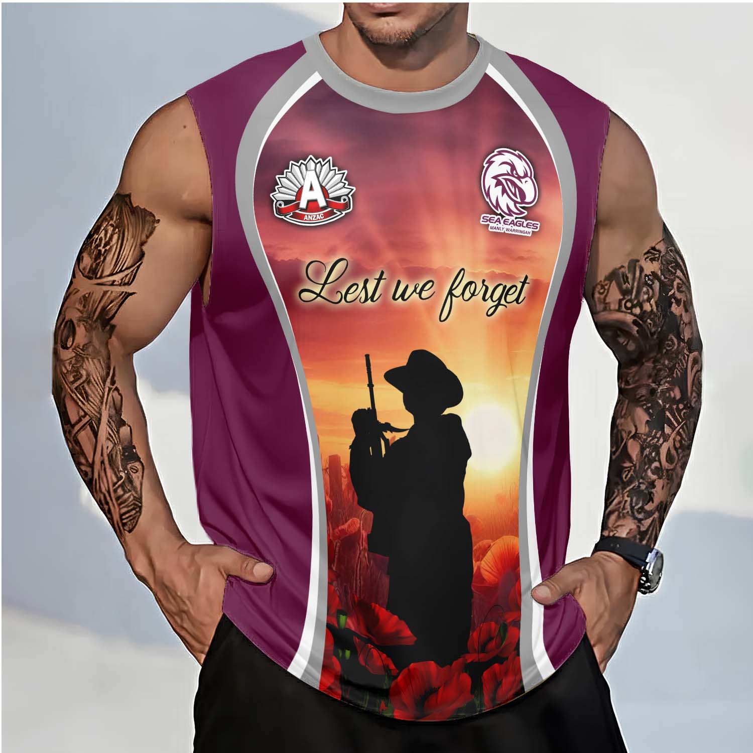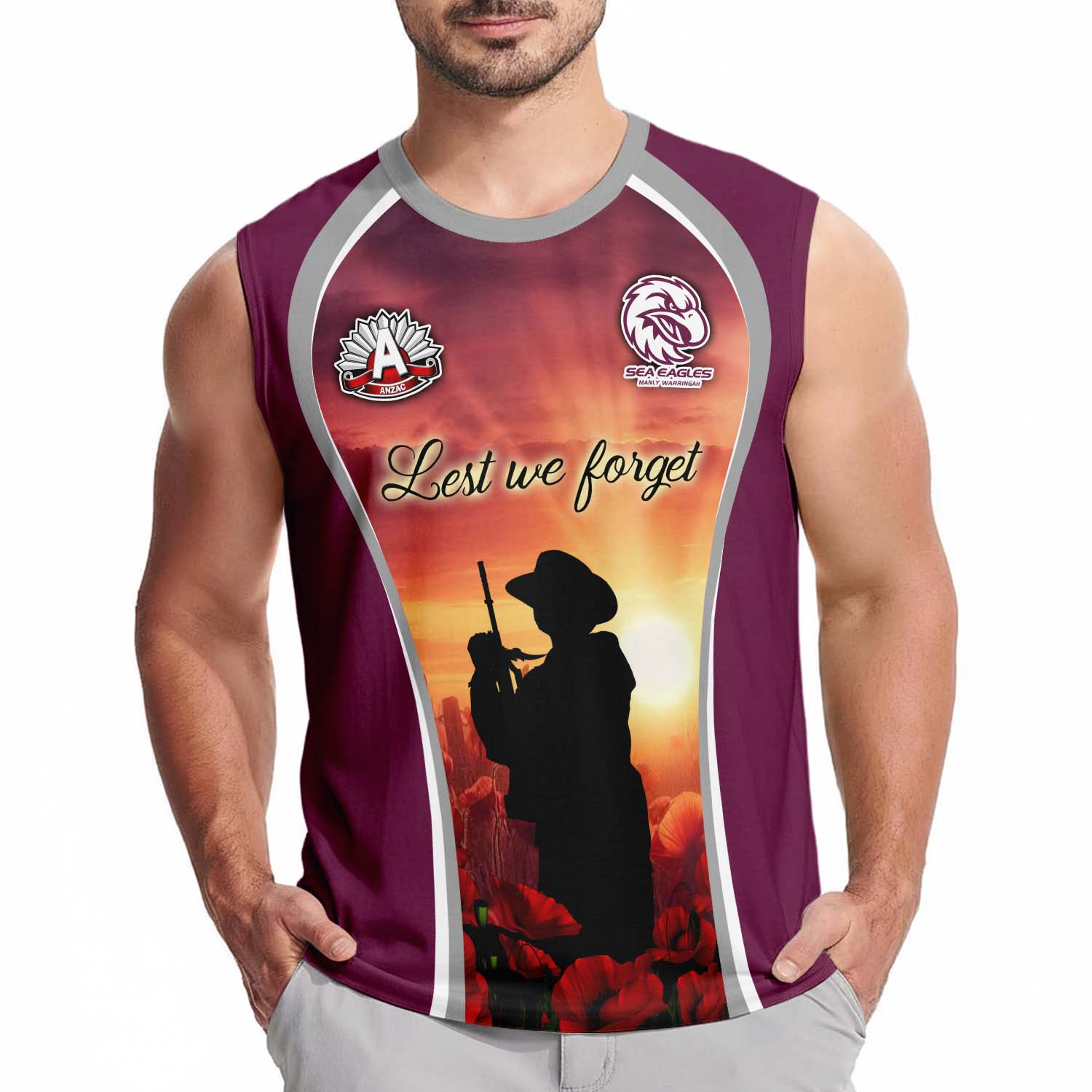 Aussiesmerch Manly Warringah Sea Eagles x Anzac Day Personalized Tank Top Gift For Fans