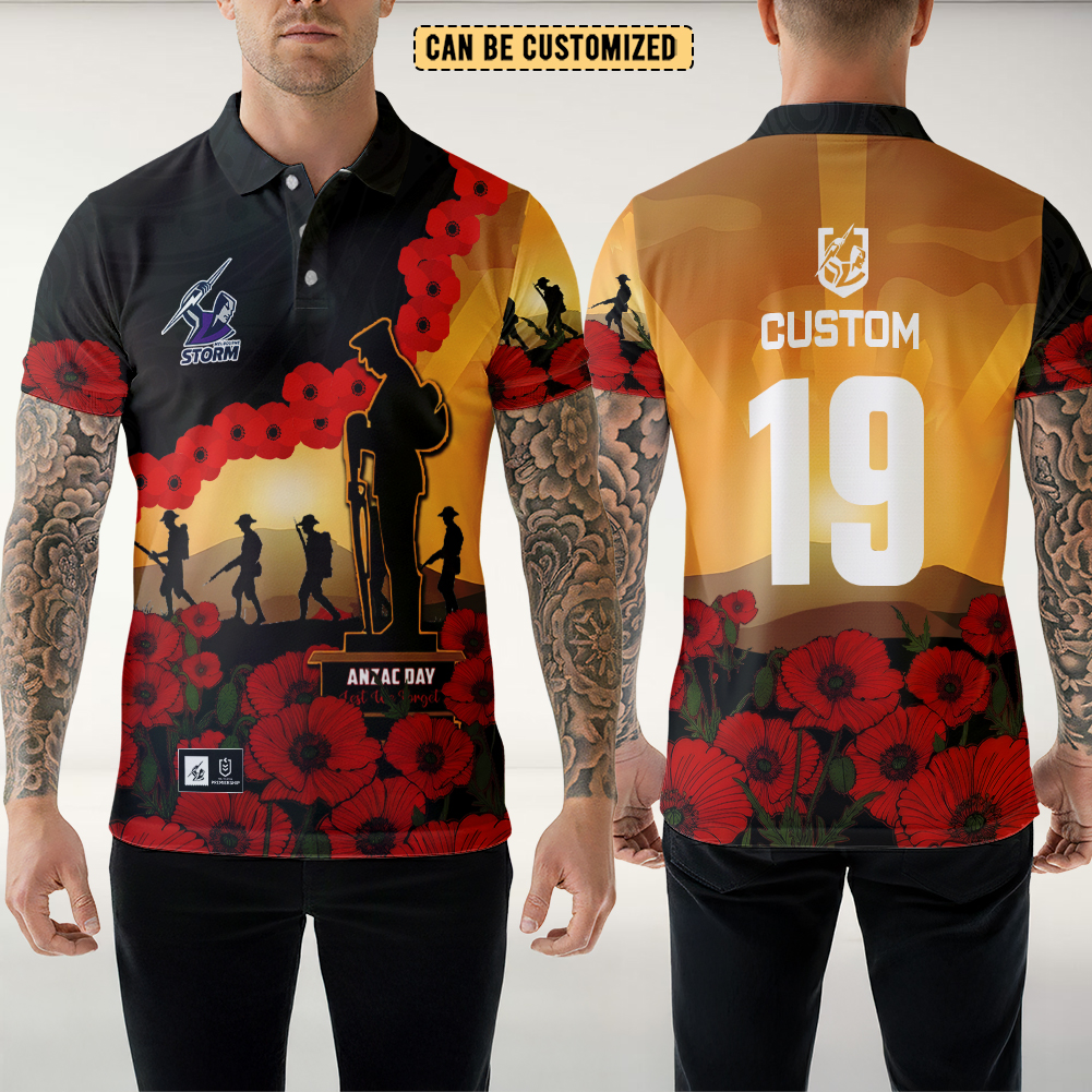 Aussiesmerch Melbourne Storm x Anzac Day Personalized Polo Shirt Gift For Fans