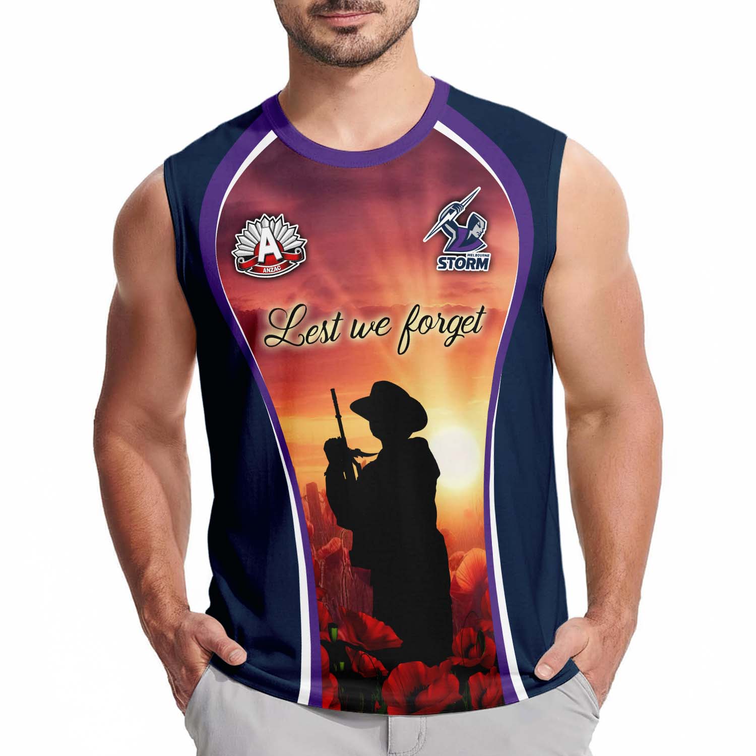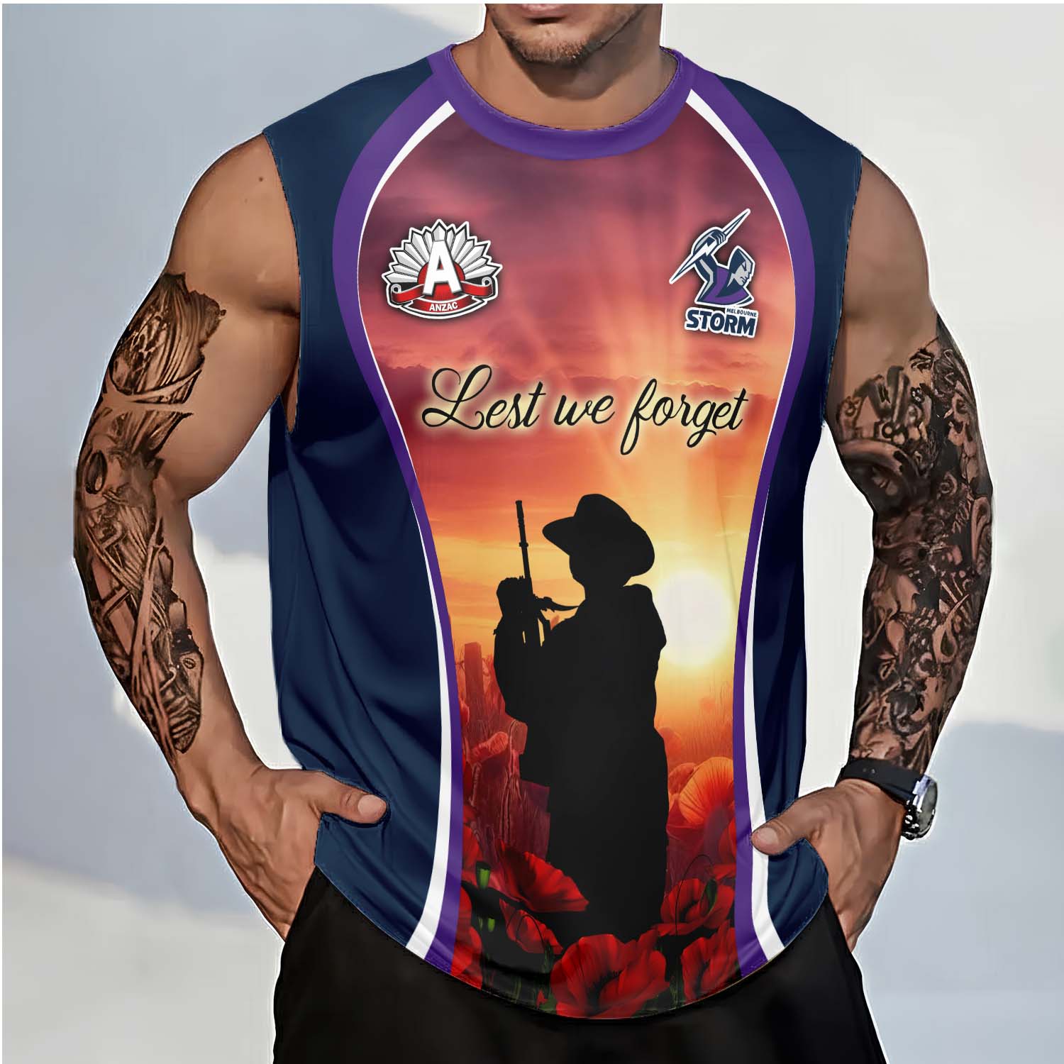 Aussiesmerch Melbourne Storm x Anzac Day Personalized Tank Top Gift For Fans