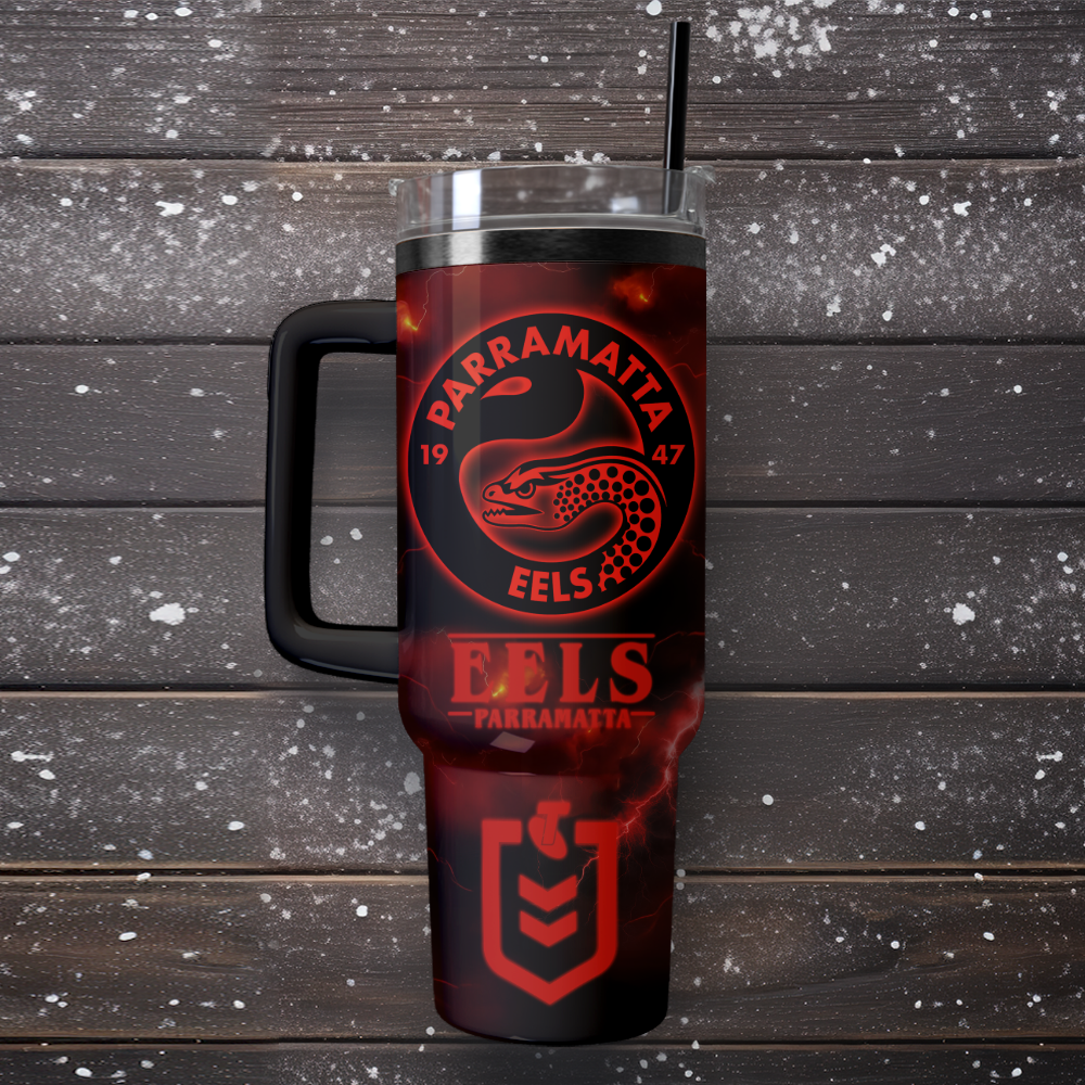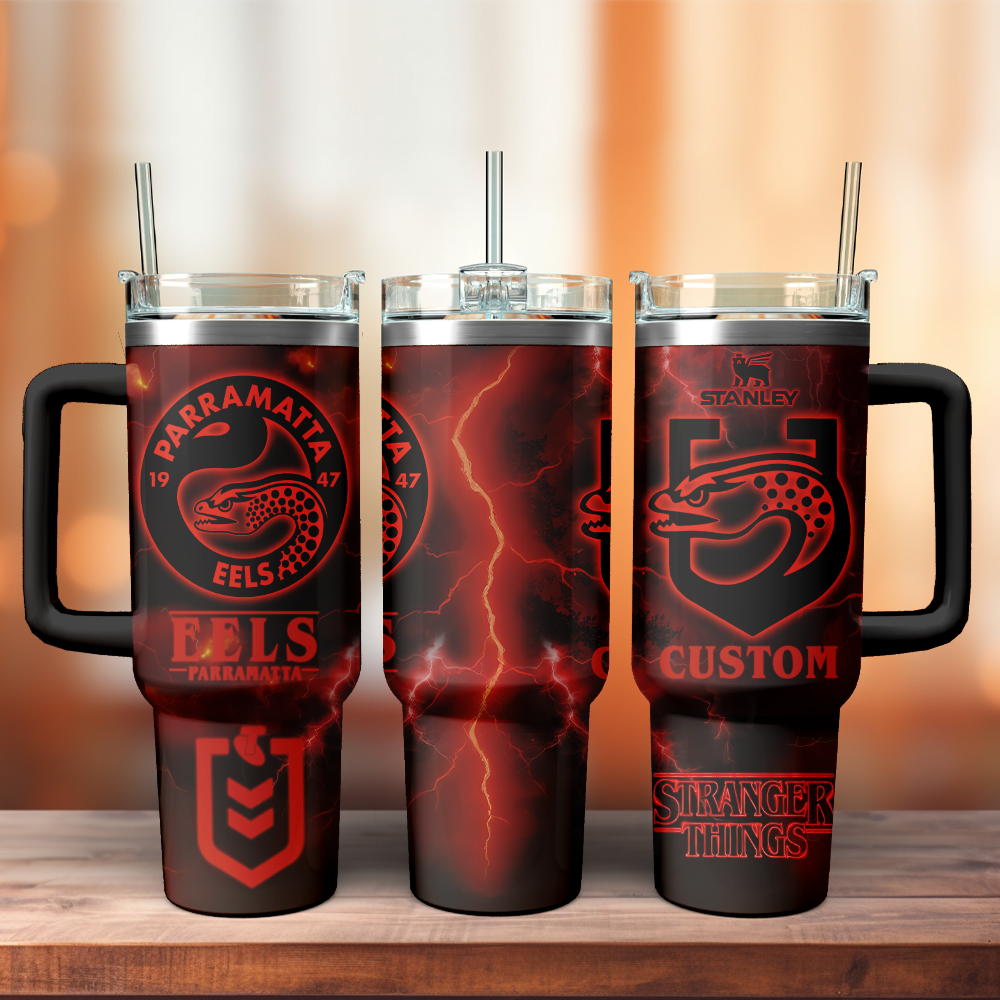 Aussiesmerch Parramatta Eels x Stranger Things Custom Stanley Quencher 40oz Stainless Steel Tumbler With Handle