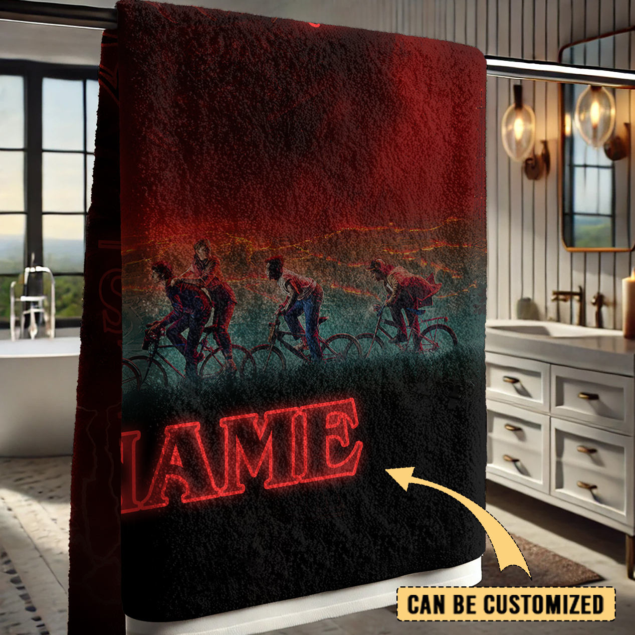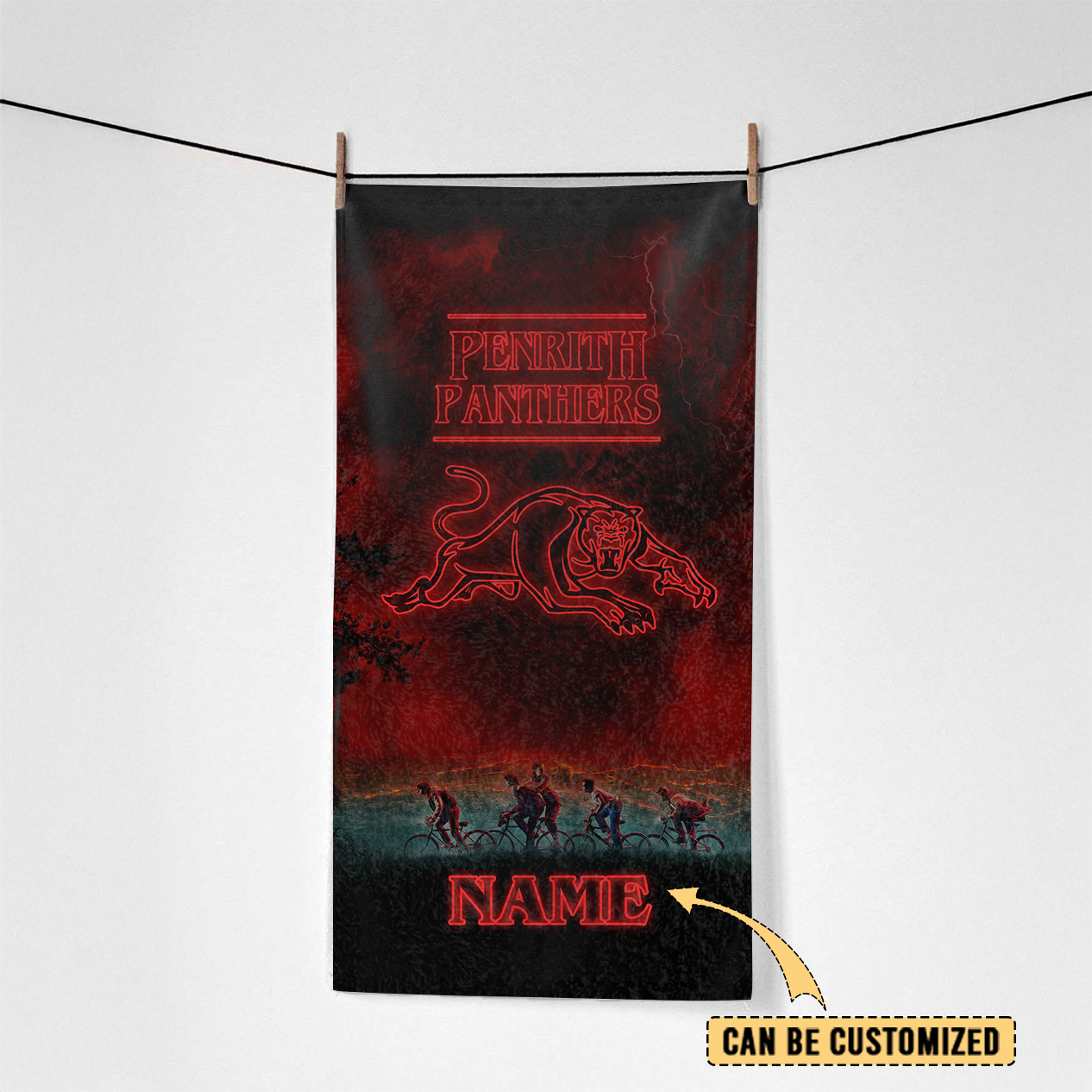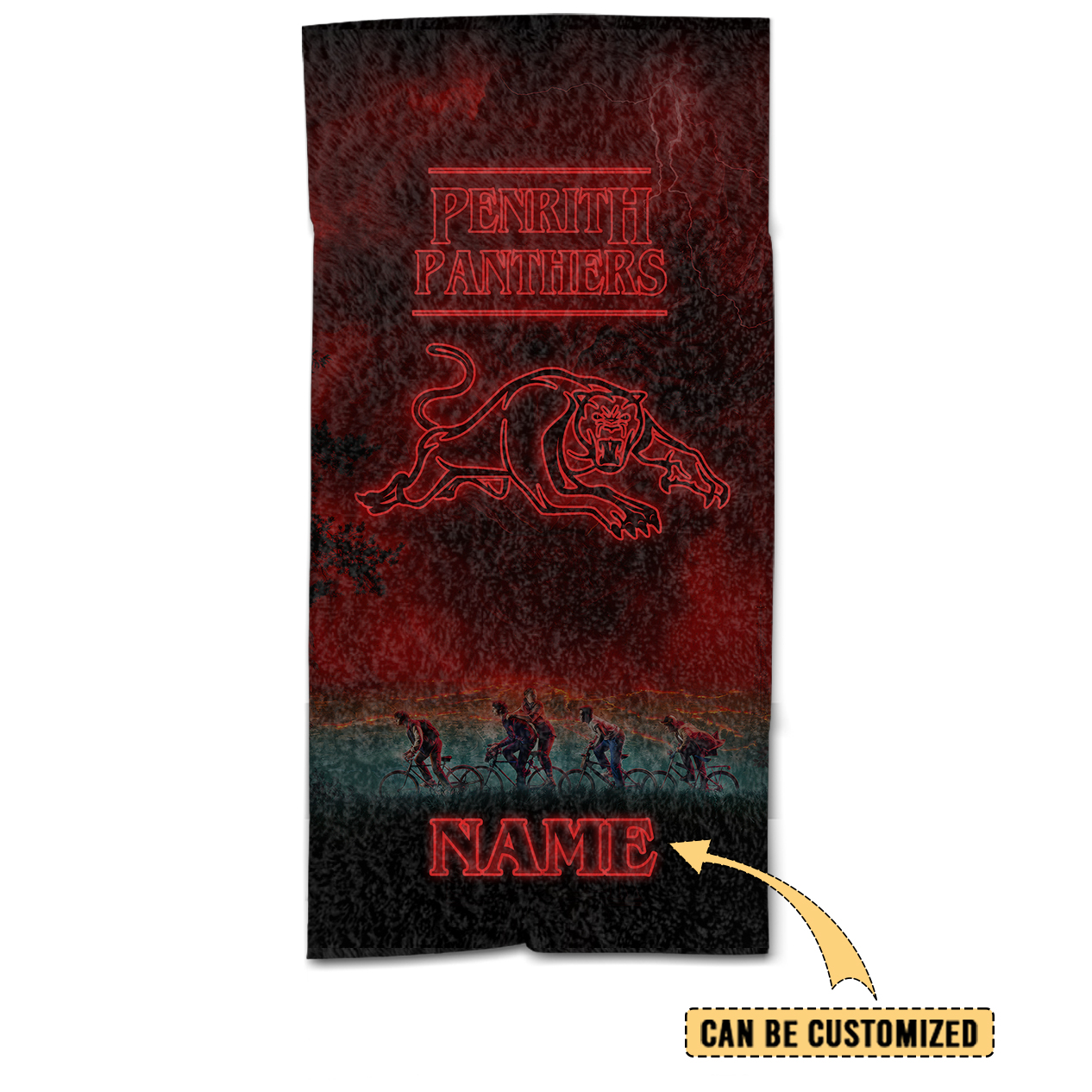 Aussiesmerch Penrith Panthers x Stranger Things Personalized Pool Travel Beach and Bath Towels for Kids and Adult