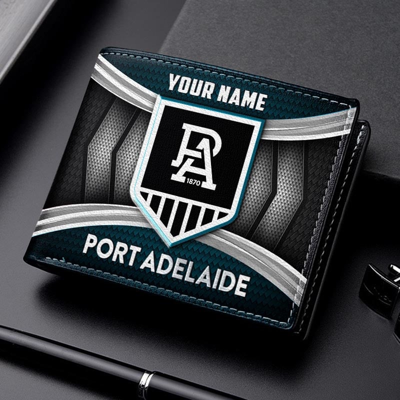 Aussiesmerch Port Adelaide Personalized Leather Wallet Gift For Fans