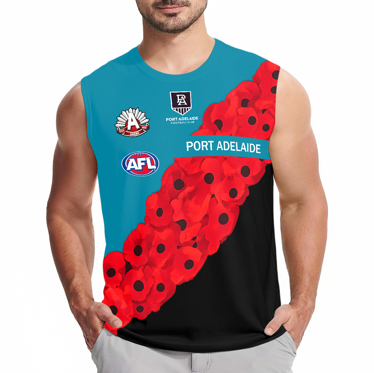 Aussiesmerch Port Adelaide x Anzac Day Personalized Tank Top Gift For Fans