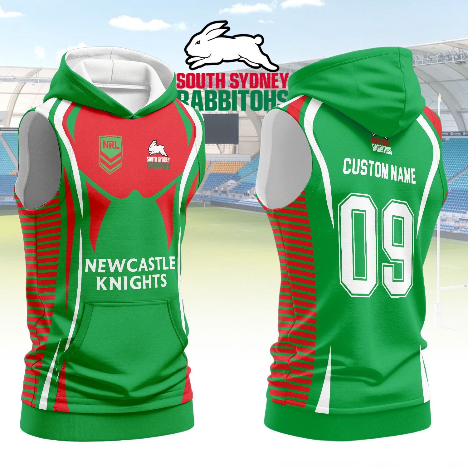 Aussiesmerch South Sydney Rabbitohs Personalized Hooded Tank Top Gift For Fans