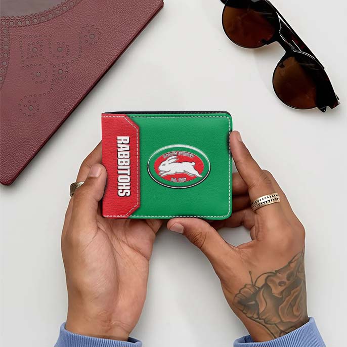 Aussiesmerch South Sydney Rabbitohs Personalized Leather Wallet Gift For Fans