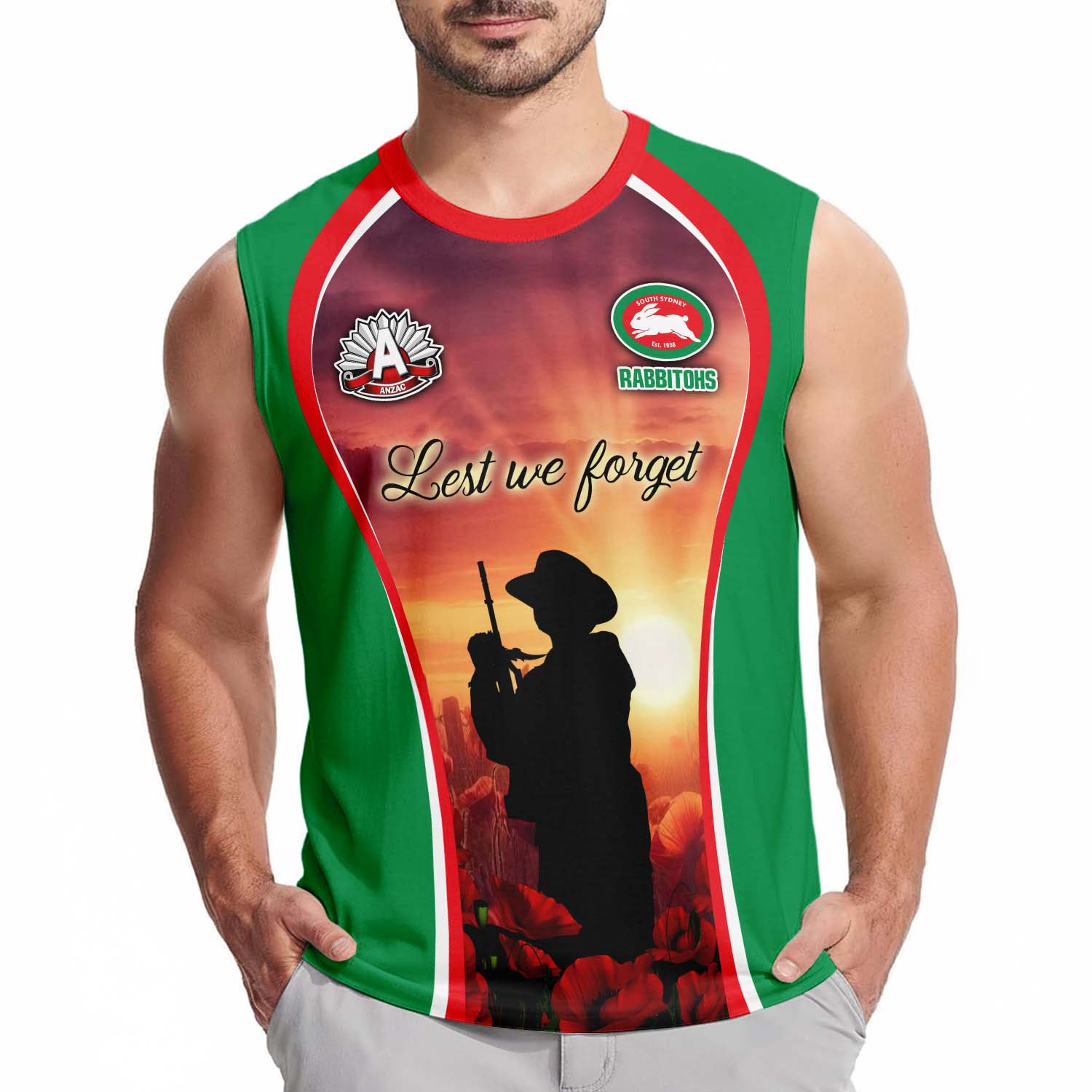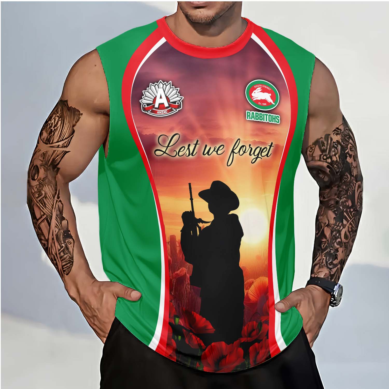 Aussiesmerch South Sydney Rabbitohs x Anzac Day Personalized Tank Top Gift For Fans