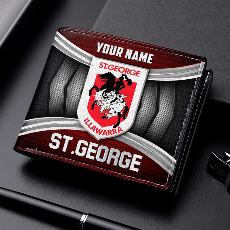 Aussiesmerch St. George Illawarra Dragons Personalized Leather Wallet Gift For Fans