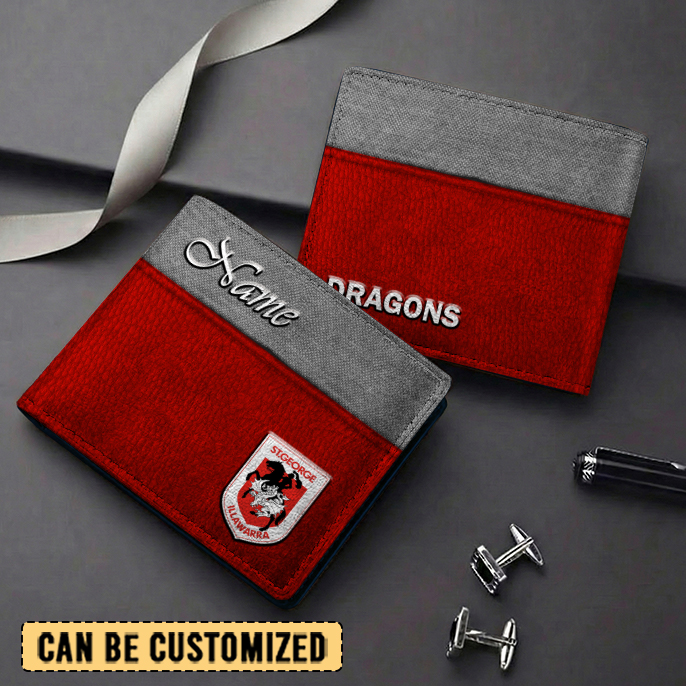Aussiesmerch St. George Illawarra Dragons Personalized Leather Wallet Gift For Fans