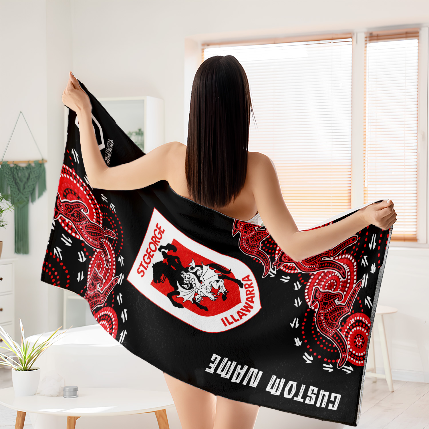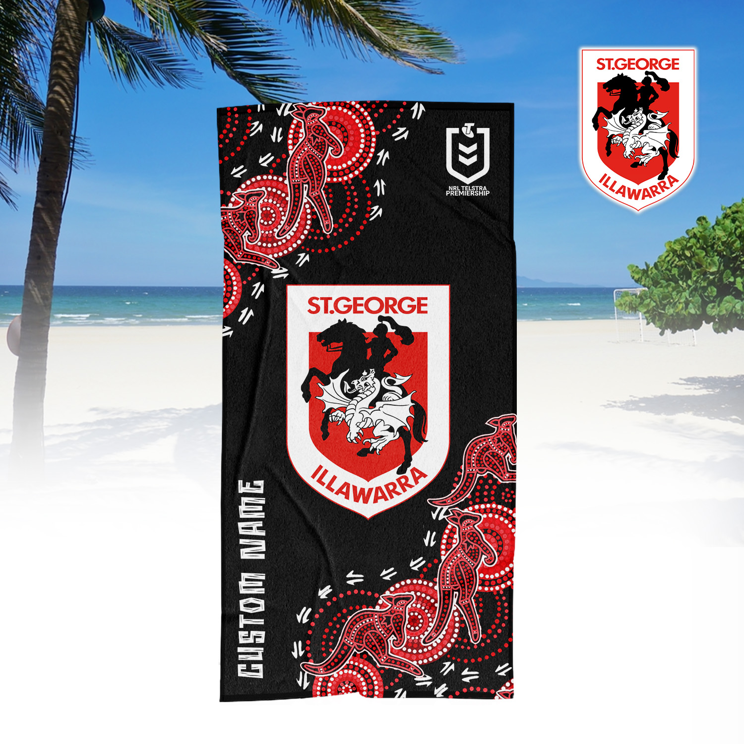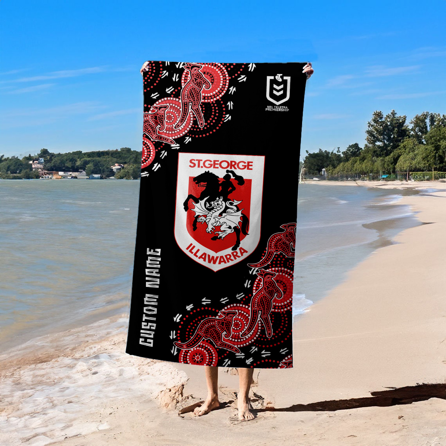 Aussiesmerch St. George Illawarra Dragons Personalized Pool Travel Beach and Bath Towels for Kids and Adult