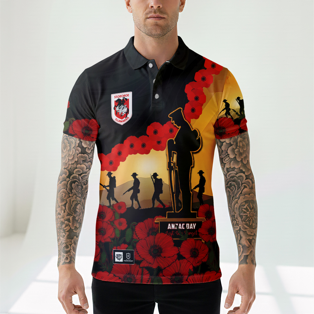 Aussiesmerch St. George Illawarra Dragons x Anzac Day Personalized Polo Shirt Gift For Fans