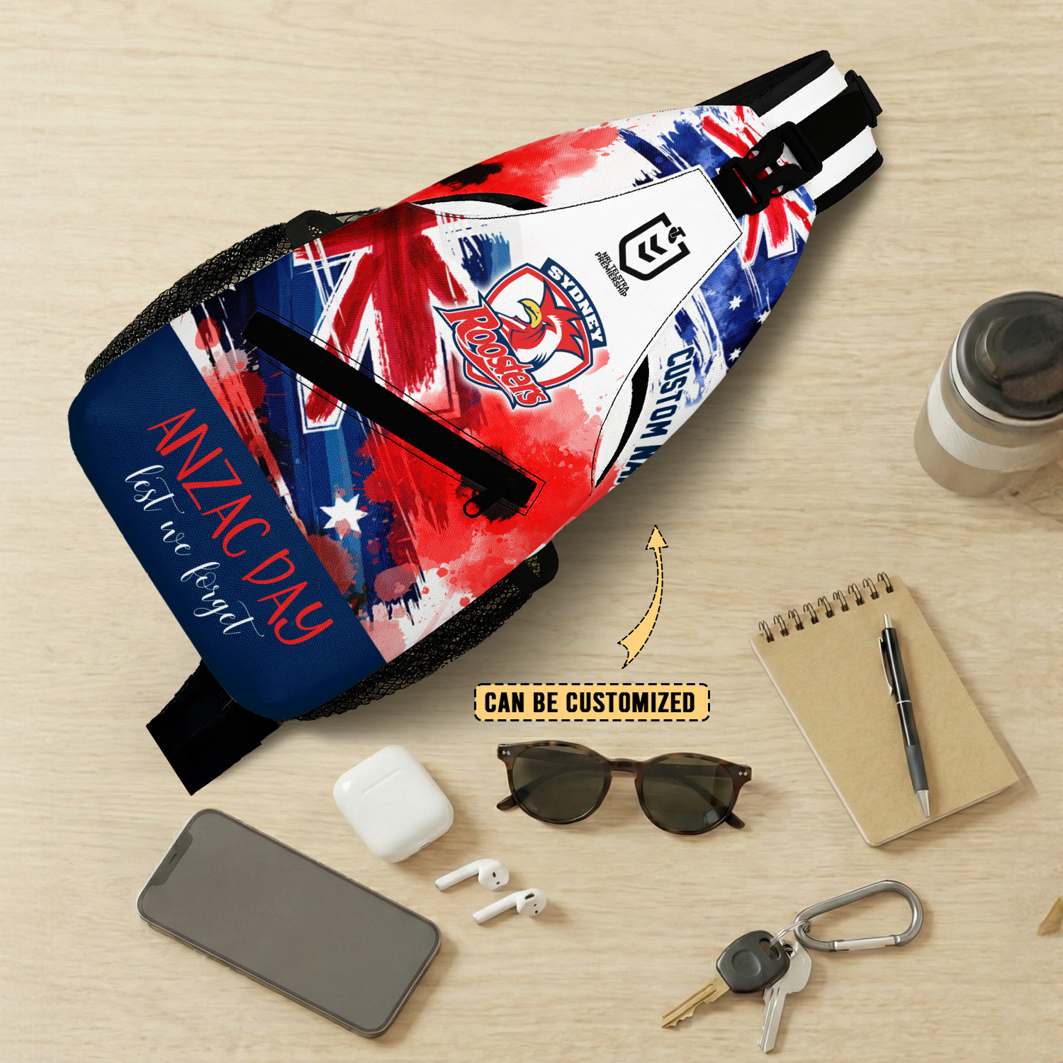 Aussiesmerch Sydney Roosters x Anzac Day Personalized Sling Bags Gift For Fans