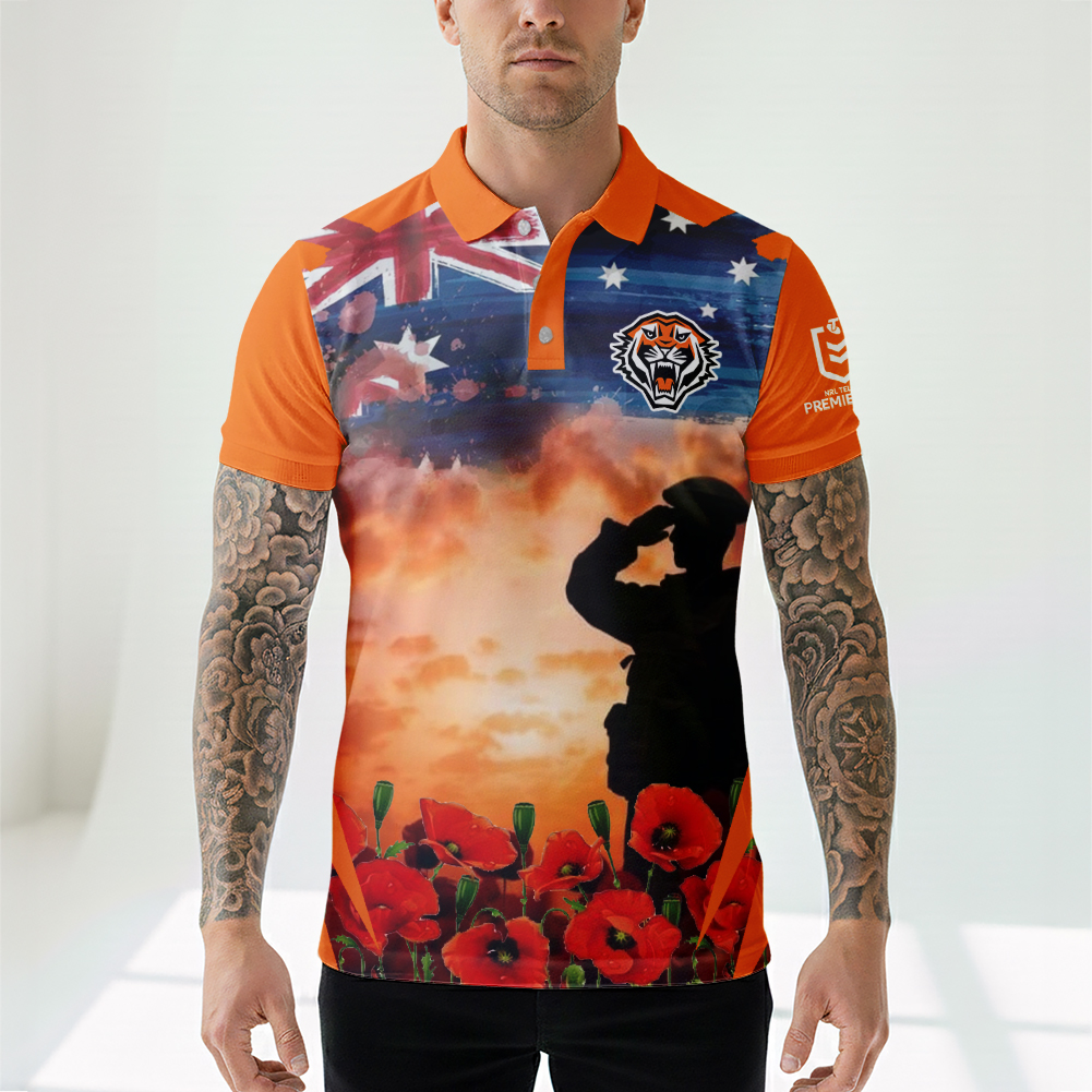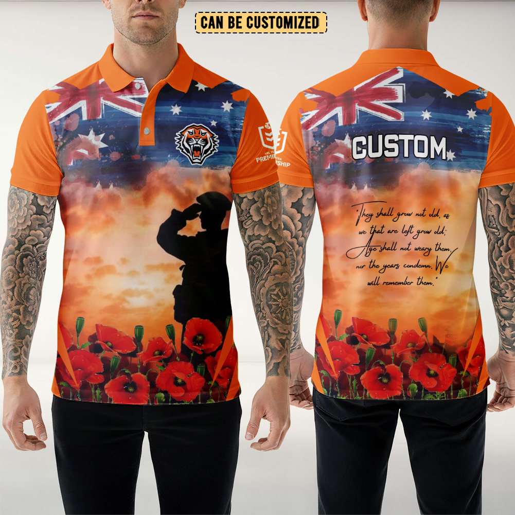 Aussiesmerch Wests Tigers x Anzac Day Personalized Polo Shirt Gift For Fans