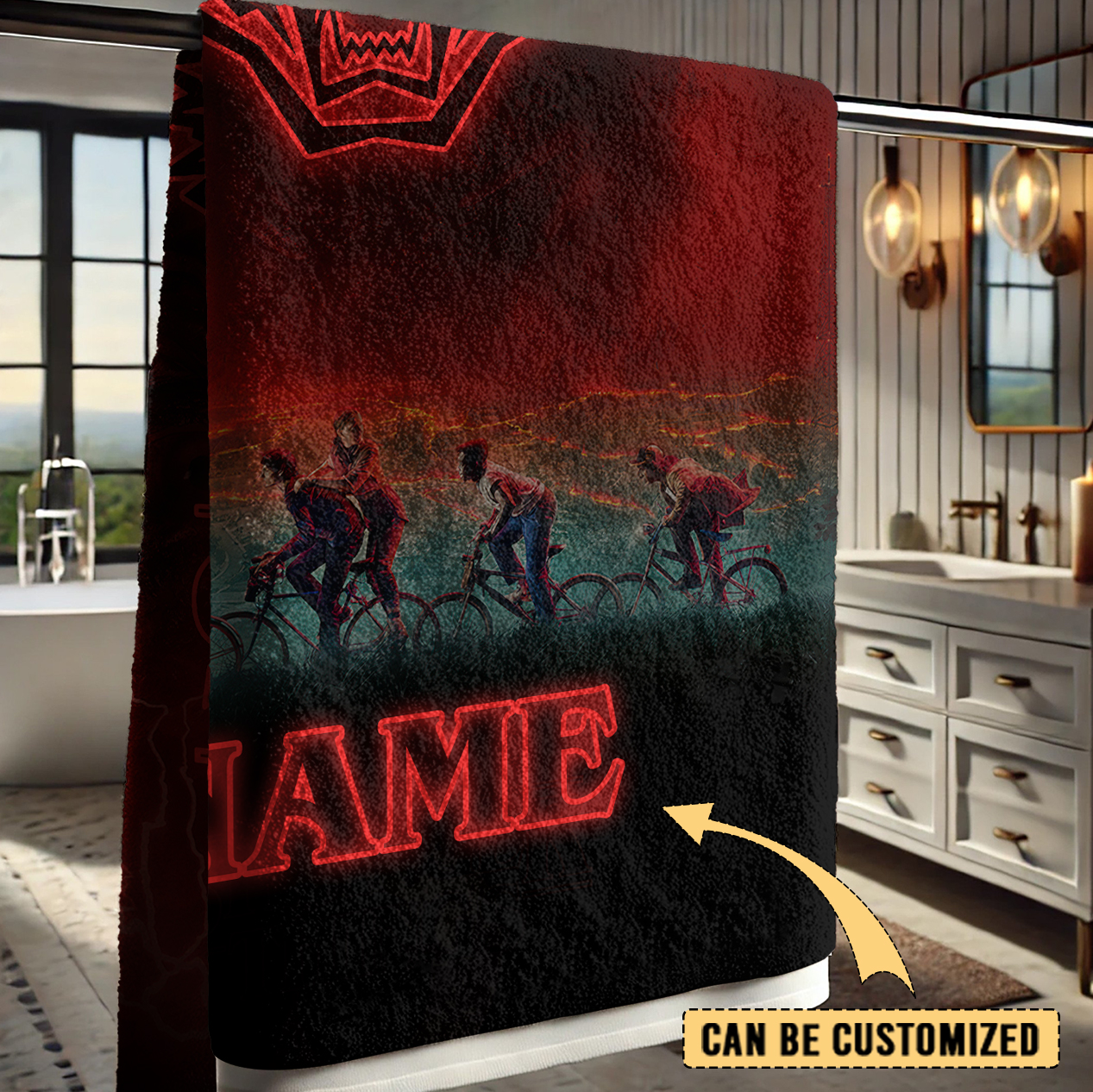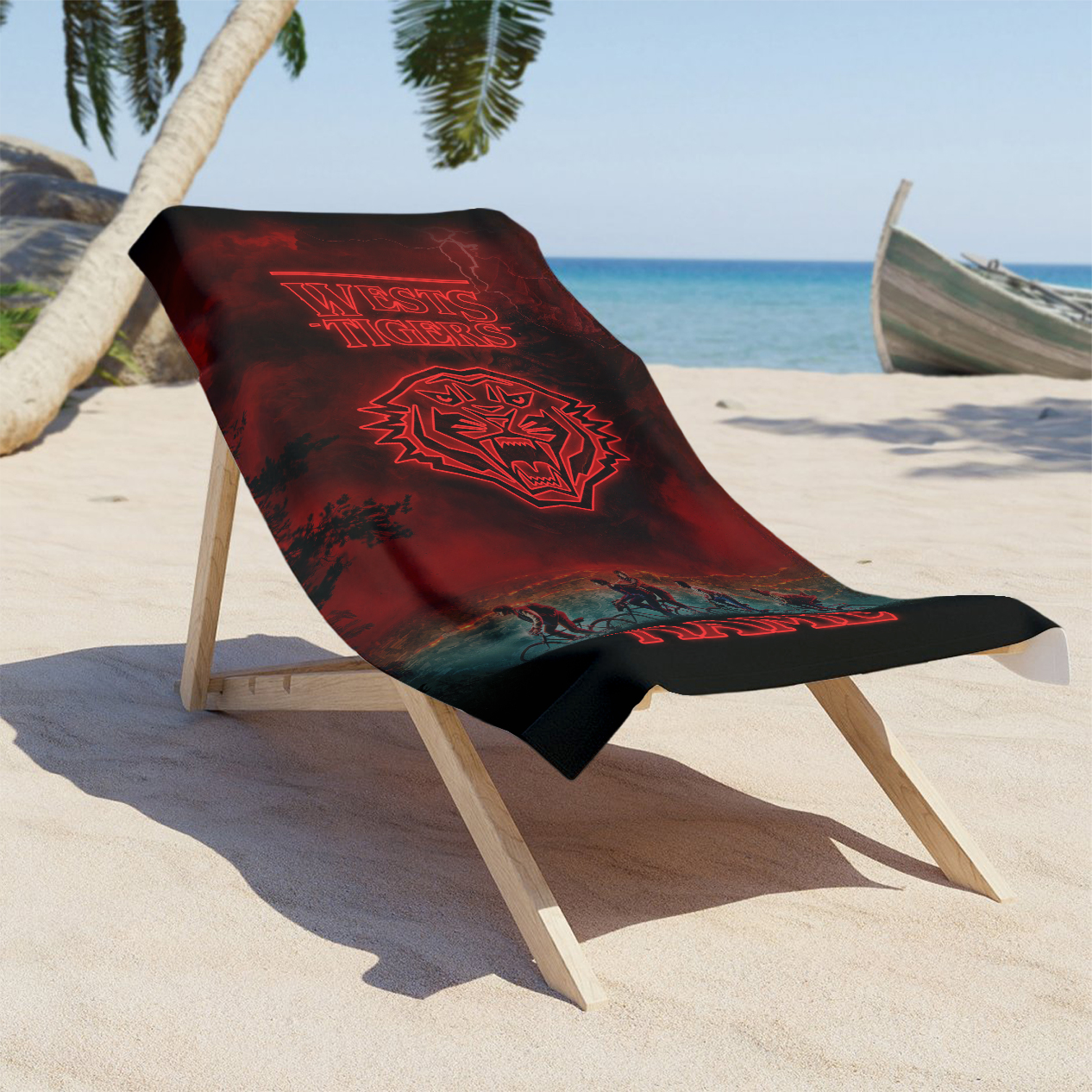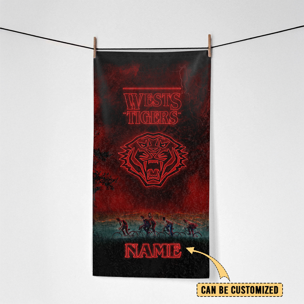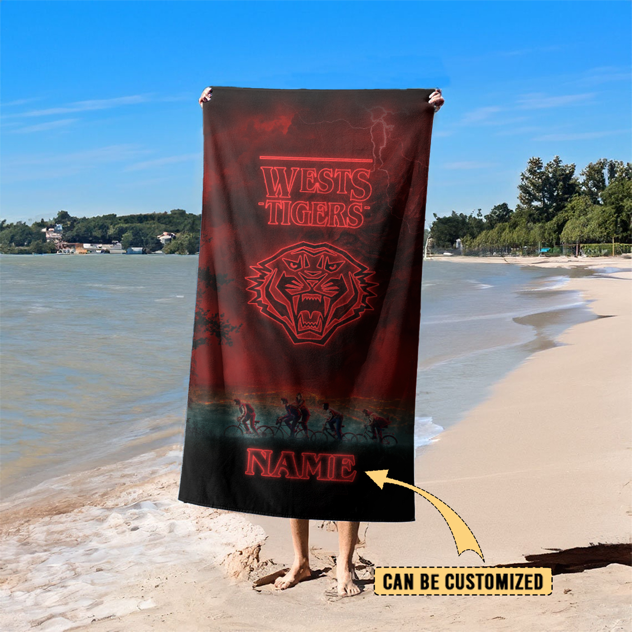 Aussiesmerch Wests Tigers x Stranger Things Personalized Pool Travel Beach and Bath Towels for Kids and Adult